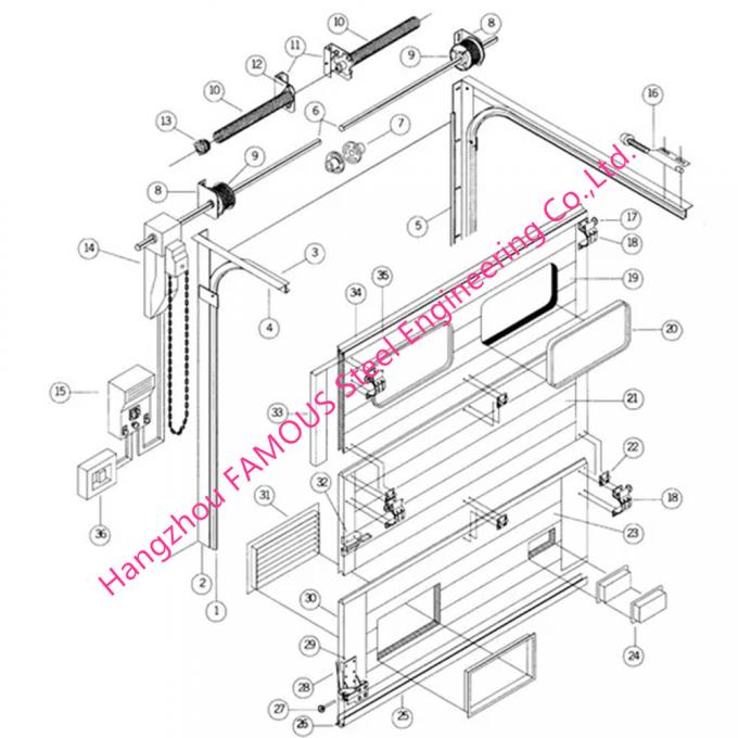 2 .. ข้อต่อแต่ละส่วนของแผงถูกนำมาใช้ "การป้องกันนิ้ว" (Pinch-resistant) การออกแบบความปลอดภัยเพื่อหลีกเลี่ยงการบาดเจ็บที่นิ้วเมื่อประตูเปิดและปิด